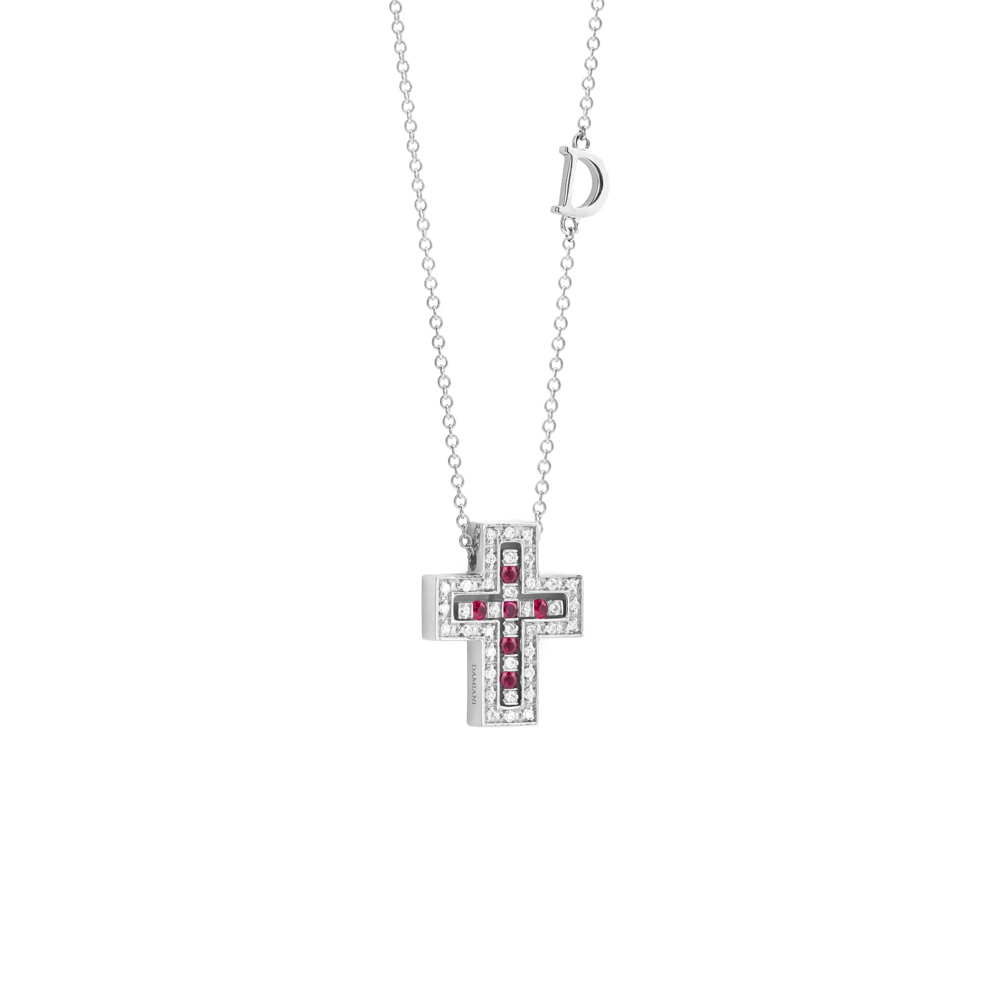 Collana croce oro bianco con diamanti e rubini Belle Epoque, Damiani