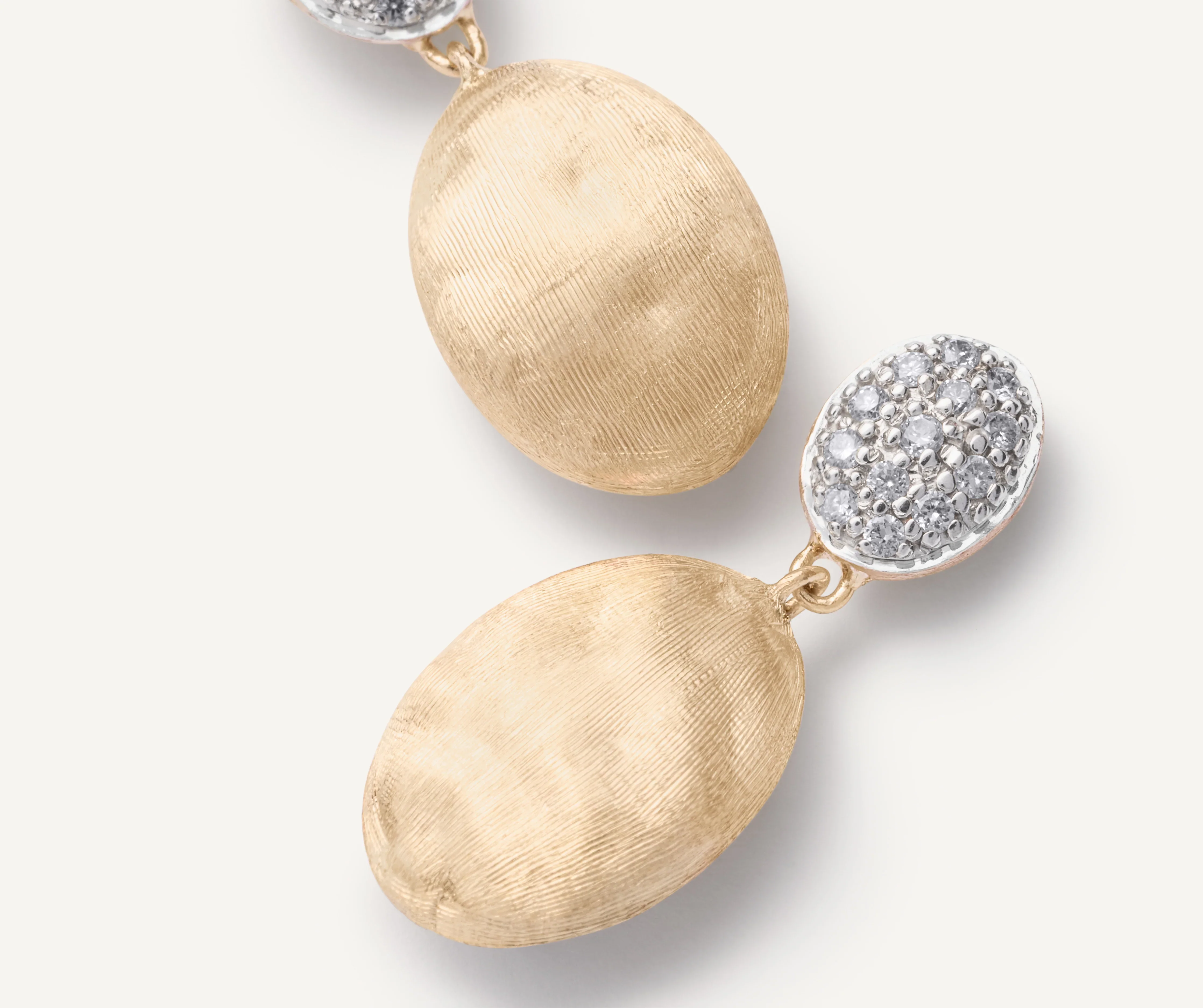 Aggiungi un tocco di eleganza senza tempo al tuo look con gli orecchini doppi con diamanti della collezione Siviglia di Marco Bicego. Realizzati in oro giallo 18kt e incisi a mano secondo un'antica tecnica fiorentina, questi orecchini presentano due elementi ovali, di cui uno decorato con una pavé di diamanti taglio brillante. Chic e raffinati, per un look impeccabile.